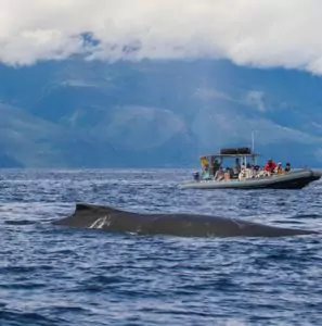 For a more thrilling and intimate wildlife encounter, hop aboard a low-to-water raft for eye-level dolphin watching off the coast of Lahaina, Maui. Depending on the season, enjoy dolphin tours (May–November) or whale watching (December–April). With marine naturalists guiding the journey, this adventure brings you closer than ever to incredible ocean wildlife.