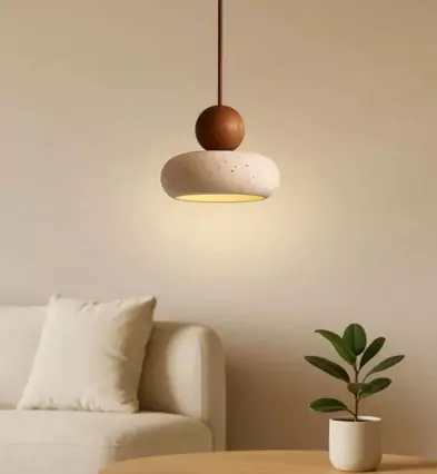 Modern Wooden & Stone Pendant Light – Minimalist Hanging Lamp