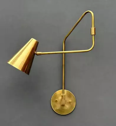 This handcrafted brass wall sconce combines mid-century elegance with functional design. Measuring 5 inches wide, 15 inches high, and 25 inches deep, its adjustable swing arm lets you direct light precisely where needed. Perfect for bedrooms, living rooms, or reading nooks, it supports standard E12/E14 bulbs (not included) and comes in 10 brass finishes, offering both style and versatility for modern vintage interiors.