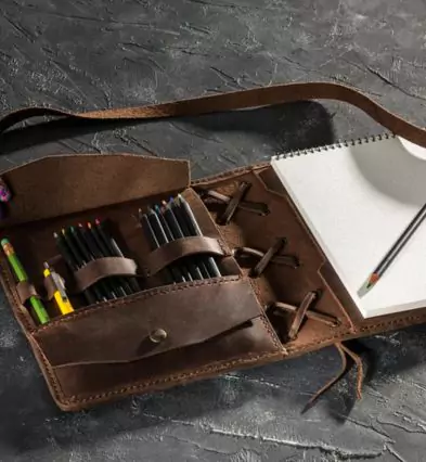 Drawing Sketchbook with Pencils & Journal | Personalized Leather Cover
