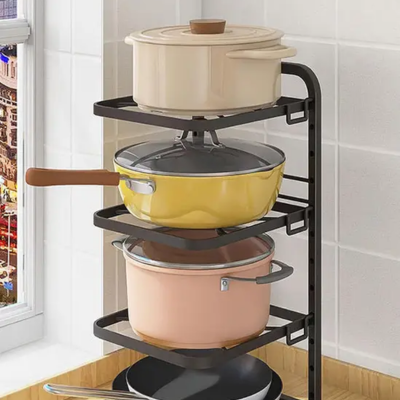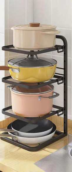 Keep your kitchen neat and organized with the Living and Home 4-Tier Pot Pan Organizer. Its solid construction allows you to store heavy pots and pans safely, protecting them from damage or deformation. The adjustable dividers make it easy to fit cookware of different sizes, and the tool-free assembly ensures quick setup. Perfect for kitchens with limited cabinet space, this organizer helps maintain a clutter-free cooking area while adding practical storage.