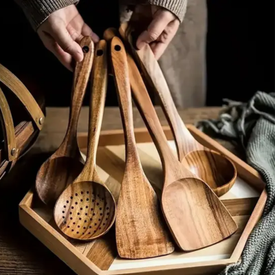 5. Dyzi 5-Piece Wooden Kitchen Utensils Set